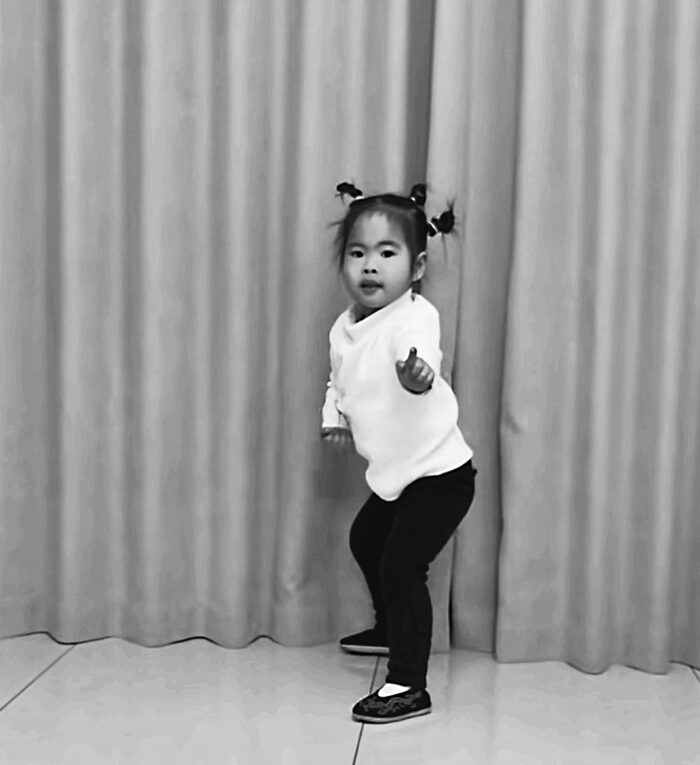 这位小女孩名叫郑沁羽,如今已拜洪拳传人戚冠军为师,学习洪拳已有两个月。她的父亲郑先生向我们描述了这段始于一次偶然模仿的“武缘”。