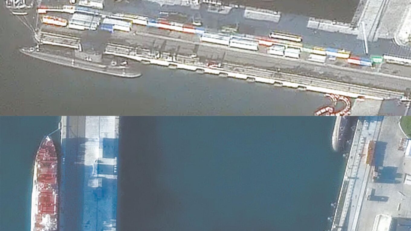 不过,西方媒体发布的袭击后卫星图像显示,一艘改进型“基洛”级潜艇的位置与袭击前相同,袭击发生时停泊在附近的另两艘潜艇已经移动,其他潜艇和舰艇仍然停泊在泊位上,码头受损情况清晰可见。