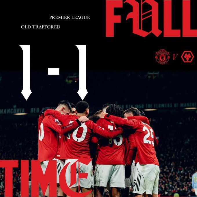 直播吧12月31日讯,英超第19轮,曼联在年终收官战中以1-1战平狼队,近4轮仅取得1胜。狼队则成功终结了英超11连败,及各项赛事的12连败!值得一提的是,狼队在老特拉福德球场结束了英超11连败的颓势。