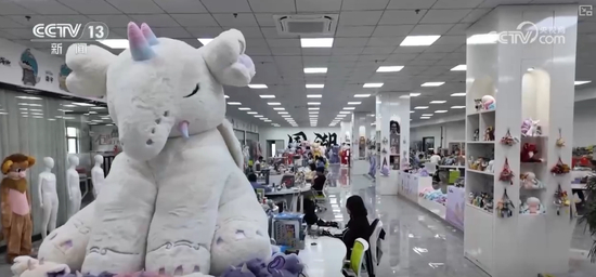 某潮玩公司外贸负责人吴巧媚介绍,这个产品是目前他们在海外市场销量最高的一个产品,把它跟中国《山海经》里的神兽“食梦貘”和中国非物质文化遗产“合香”技艺相结合,让它有毛绒的触感和香氛的嗅觉,打造一种双重治愈的玩偶。