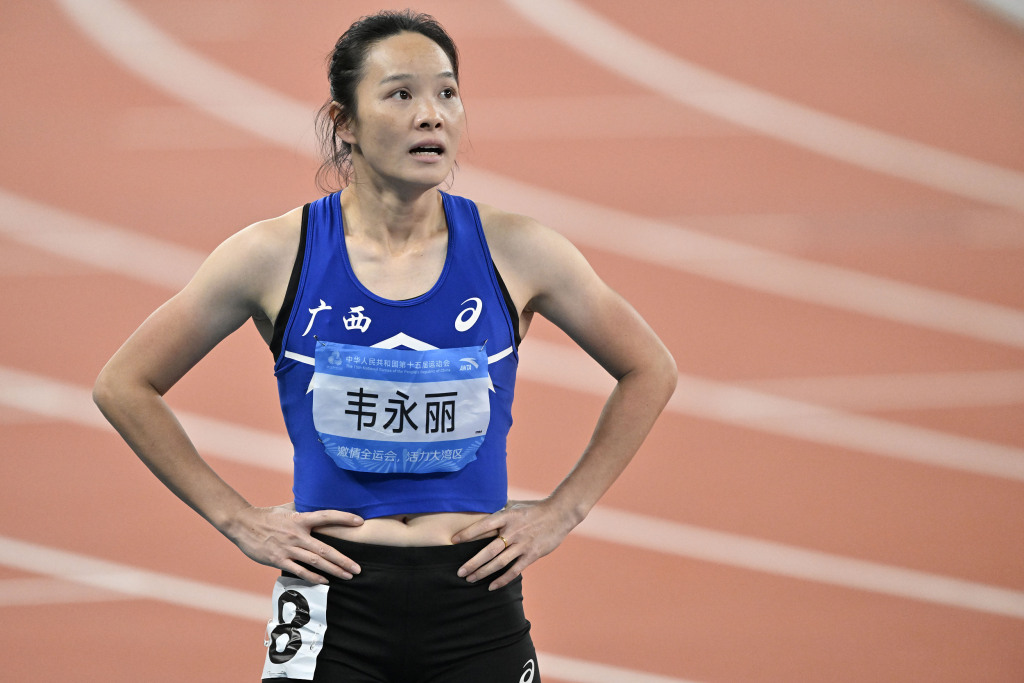 韦永丽在粤港澳全运会的女子100米决赛中摘下银牌。