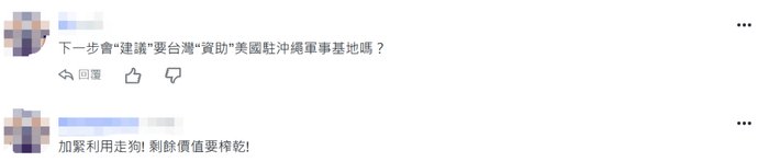 该消息立刻在岛内激起民愤。不少台湾网友留言痛斥:“做狗还要贴钱给主人?”“剩余价值要榨干!”更有台湾网友指出,台积电先进制程被转移后,再要求台湾资助美军基地升级、提高防务预算,将导致“台湾被彻底掏空”。