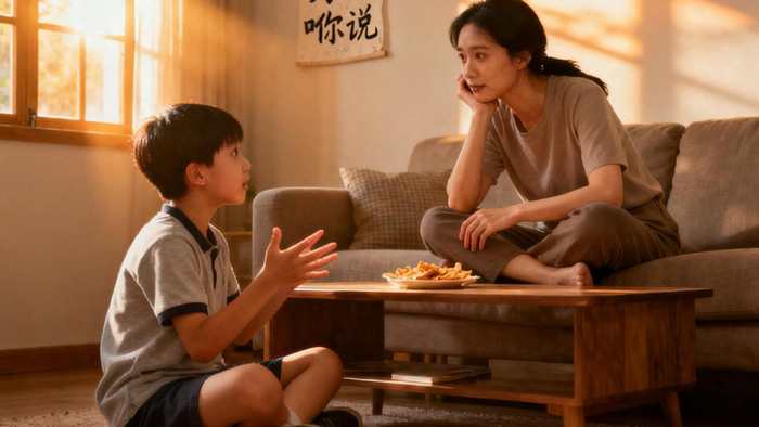 用温和的语气和孩子交流,让他感受到你的关心和支持。