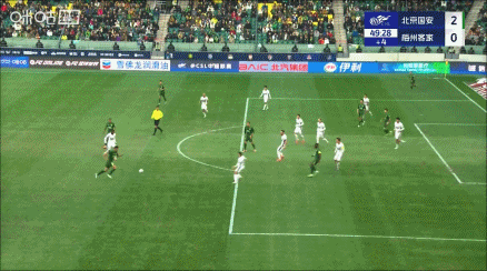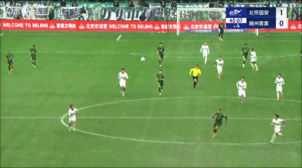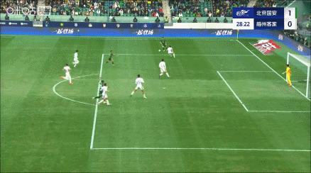 第28分钟,国安左路送出挑传,法比奥中路跟进抢点打门打偏。↓