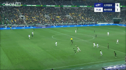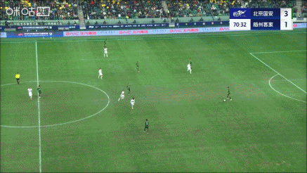 第71分钟,国安左路发动进攻,经过连续短传后打穿防线,法比奥中路跟进完成帽子戏法,北京国安4-1梅州客家。↓