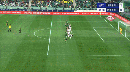 第45+4分钟,王刚禁区右侧挑传,法比奥小禁区前沿跟进头球完成双响,北京国安2-0梅州客家。↓