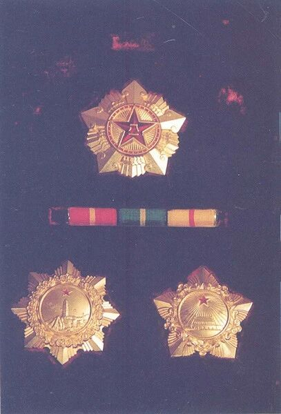 1955年,周保中将军荣获一级八一勋章、一级独立自由勋章、一级解放勋章