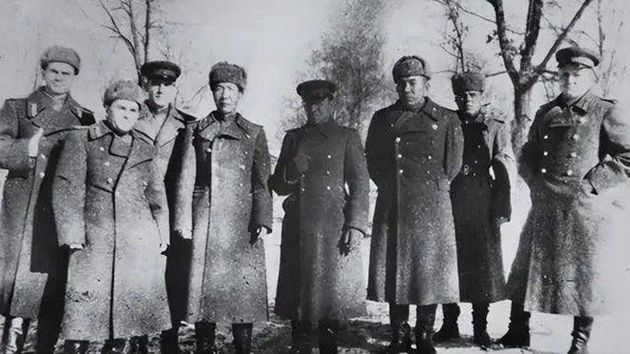 1940年冬,周保中(左四)与苏联远东军合影