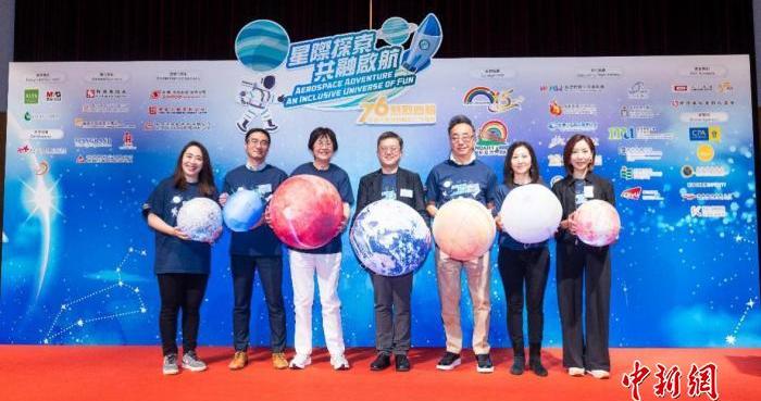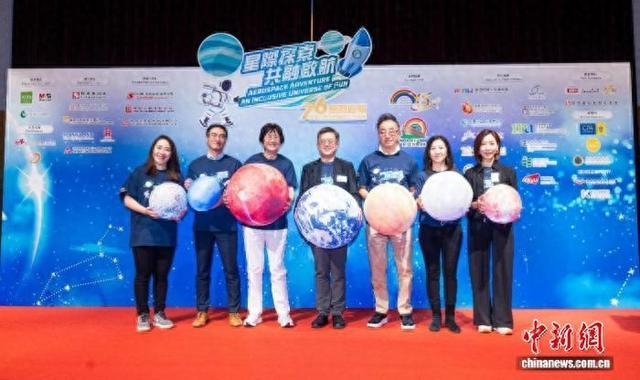 近日,香港马湾公园“挪亚方舟”联同非营利机构“Rainbow Foundation”于香港马湾航天教育基地合办“2025星际探索·共融启航”活动。图为主礼嘉宾合影。(主办方供图)