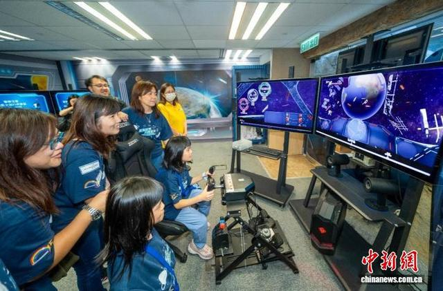 图为香港学童模拟驾驶太空飞船,漫游宇宙。(主办方供图)