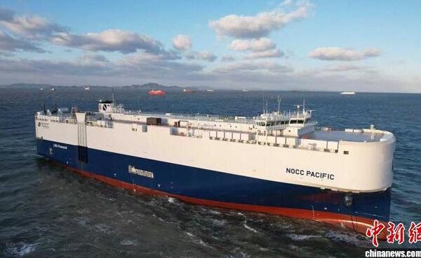 中国海工企业中集来福士建造的7000车位LNG双燃料汽车运输船“NOCC PACIFIC”近日在山东龙口正式命名,成为全球首艘满足国际海事组织2026年新安全标准的汽车运输船。该船长199.9米,配备LNG储罐和双燃料主机,具备零排放港口作业能力,且已为未来低碳燃料使用做好准备。此次建造采用新工艺提升精度并缩短周期,旨在应对新能源汽车海运量激增带来的安全挑战。