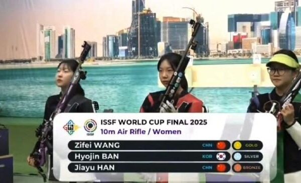 继续阅读2025射击世界杯总决赛女子10米气步枪比赛中,中国选手王子菲夺冠,韩佳予获得季军,黄雨婷排名第五。